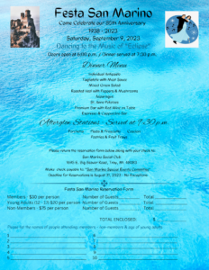 Let’s come together for an evening of Feste & Frolic, celebrating our shared heritage and the vibrant spirit of San Marino!